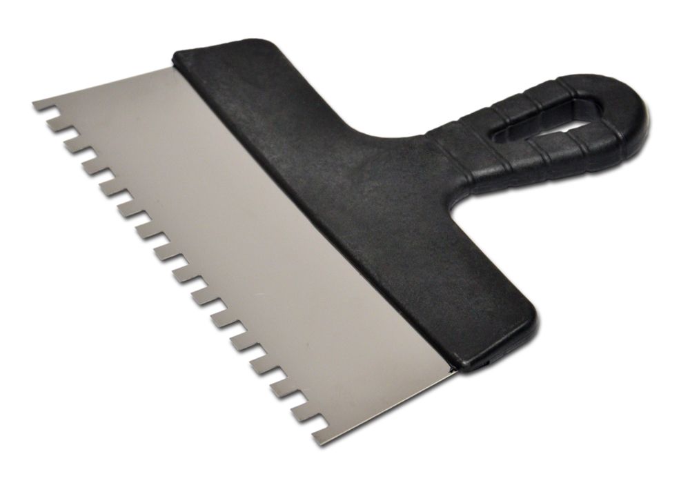 Основні переваги шпателя нержавіючого з пластмасовою ручкою:- Міцний та довговічний матеріал полотна забезпечує тривалий термін служби інструменту.- Зручна пластмасова ручка дозволяє з комфортом утримувати шпатель під час роботи.- Зубчаста структура робочої поверхні з розміром зубців 6x6 мм забезпечує рівномірне розподілення матеріалу без нерівностей.- Ширина робочої поверхні 250 мм дозволяє швидко та ефективно наносити матеріал на поверхню.