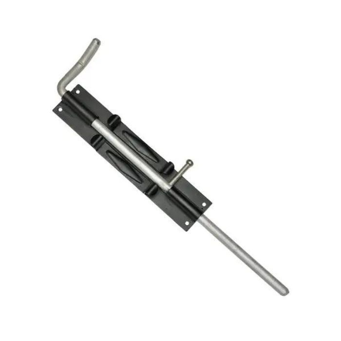 Шпінгалет Гаражний довжиною 420 мм і чорного оксамитового кольору — це надійний та функціональний елемент для безпеки та фіксації дверей і воріт. Накладна конструкція шпінгалета забезпечує легкість у встановленні та використанні.