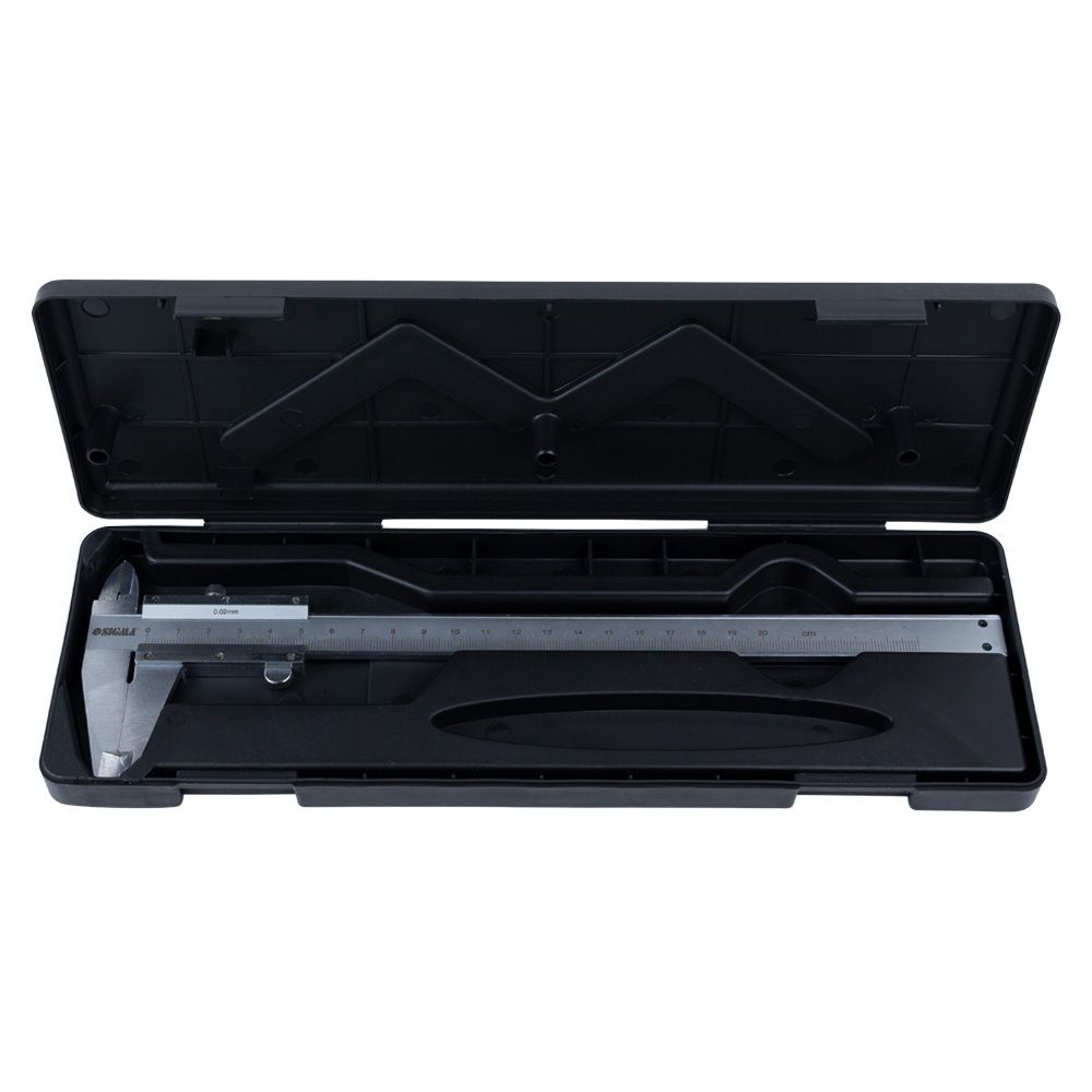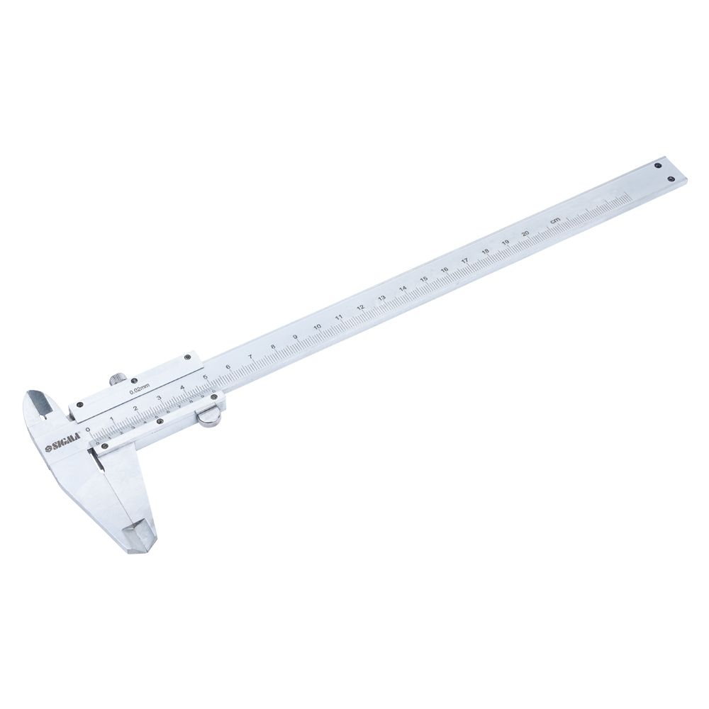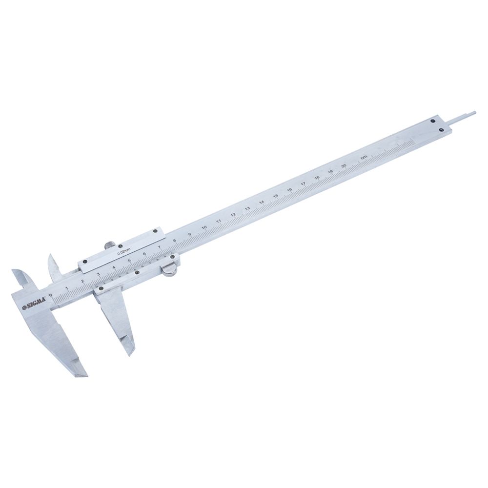 Штангенциркуль механічний 200мм точність ±0.02мм (пенал) SIGMA (3922211) для проведення зовнішніх і внутрішніх вимірювань. Оснащений глибиноміром, має ціну ділення від 0.02мм.