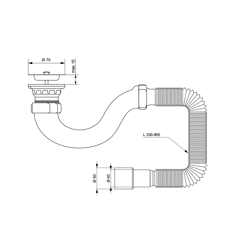 Сифон для душового піддону прямоточний з гнучким відведенням Ø40/50мм TAU (9844820)