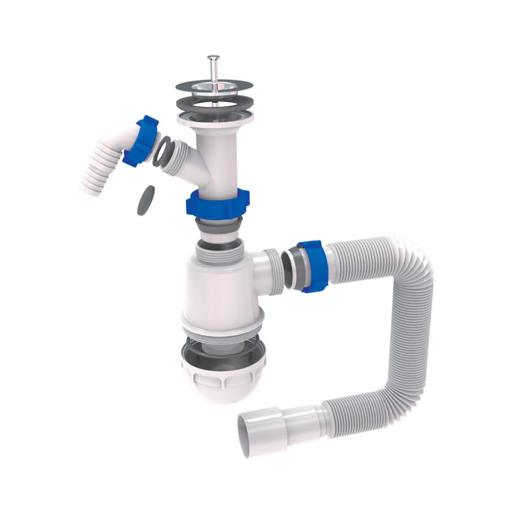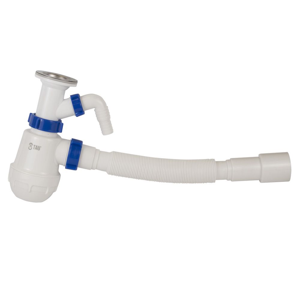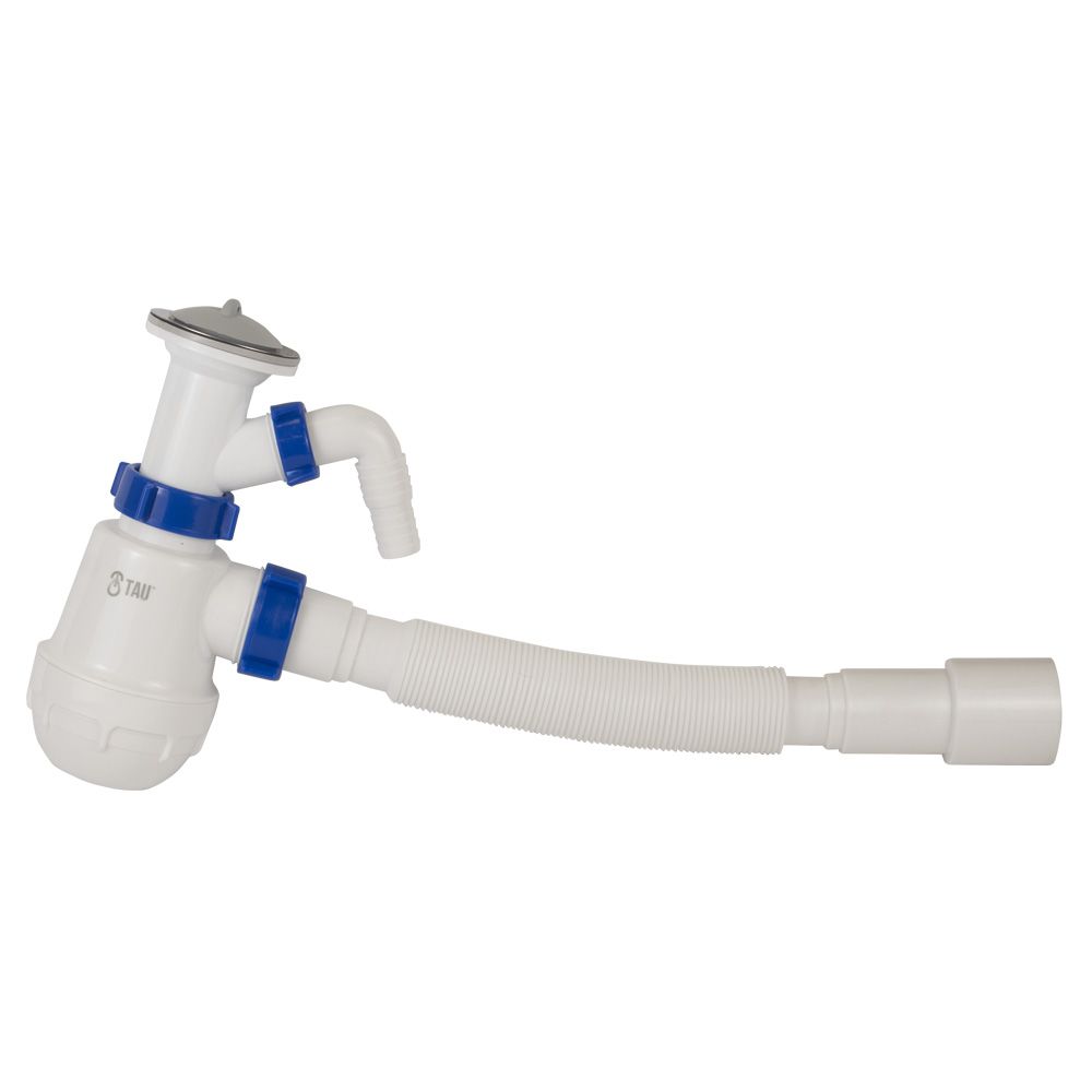 Сифон для кухонної мийки з нержавіючим випуском 1½" виводом під пральну машину та гнучким відводом Ø40/50мм TAU (9842720)