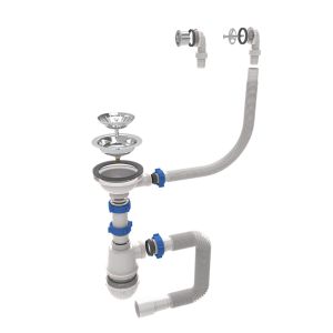 Сифон для кухонної мийки з нержавіючим випуском 3½" круглим переливом і гнучким відведенням Ø40/50мм TAU (9842530)