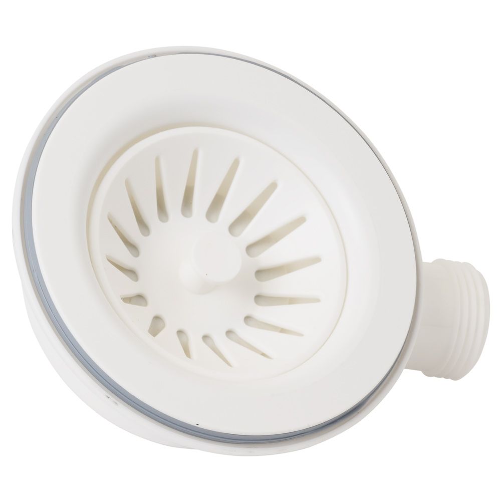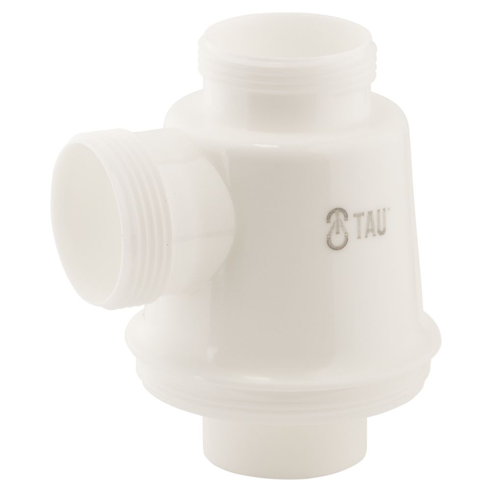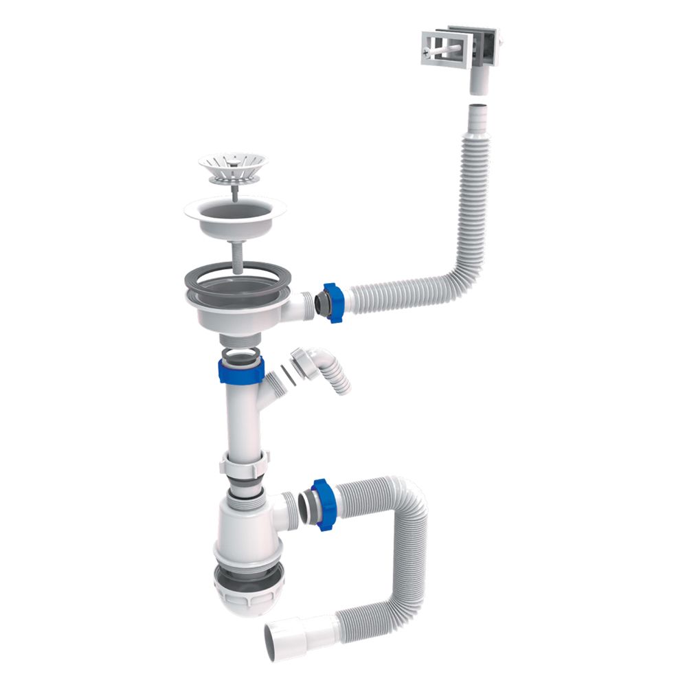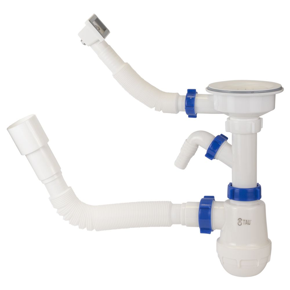 Сифон для кухонної мийки з пластиковим випуском 3½" виводом під пральну машину, квадратним переливом і гнучким відведенням Ø40/50мм (білий) TAU (9842823)