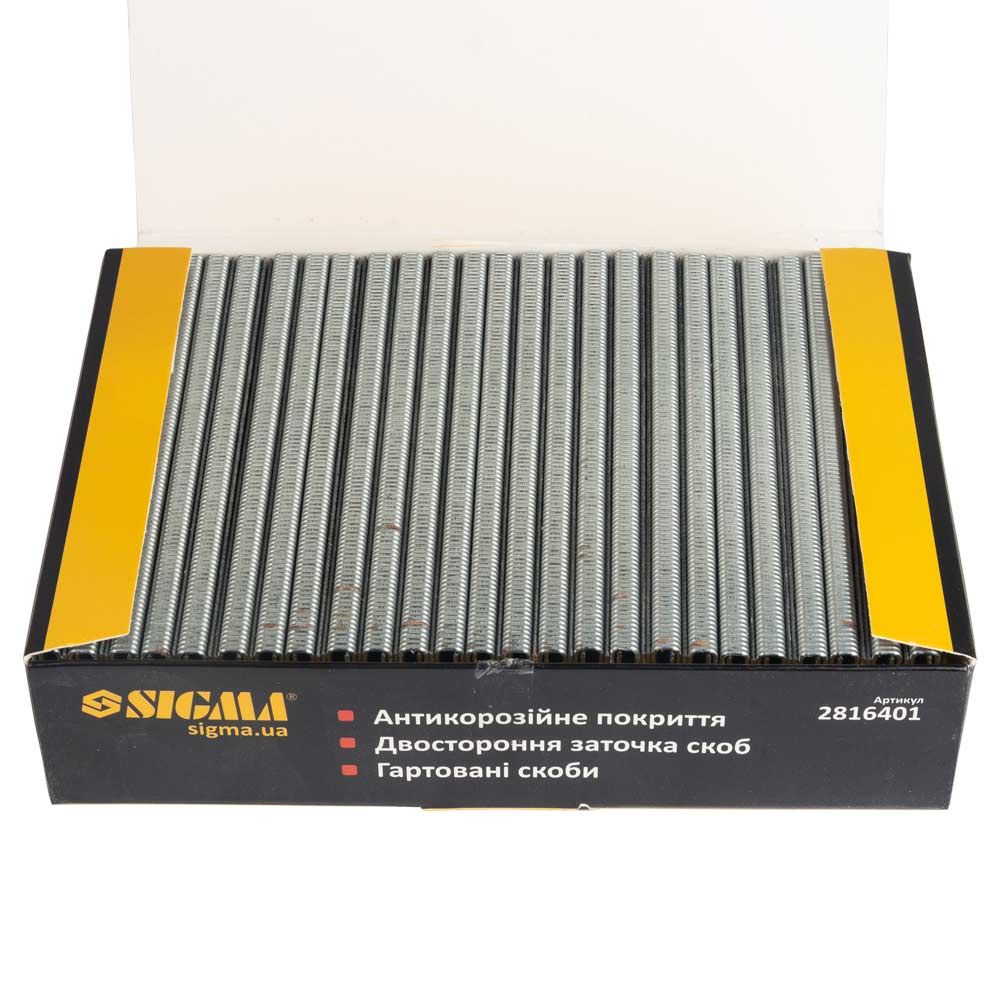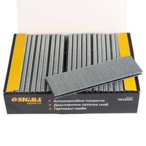 Скоби SIGMA 40×5.8 мм для пневмостеплера (2816401) – найпоширеніший тип оббивних скоб, що застосовується в меблевому виробництві, будівництві та ремонті. Забезпечують надійне кріплення фанери, ДСП, пластикових елементів, тканих і нетканих матеріалів до несучих основ.