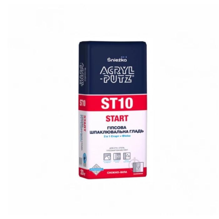 Шпаклівка гіпсова Sniezka Acryl-putz ST10 - це готовий до застосування будівельний матеріал для внутрішніх робіт. Вона має паперовий мішок упаковки з фасуванням 20 кг. Шпаклівка має білий колір і призначена для вирівнювання поверхонь перед фарбуванням або обох стін. Вона має високу якість і легко наноситься. Застосування шпаклівки допомагає створити рівну й гладку поверхню, що виглядає естетично і професійно.