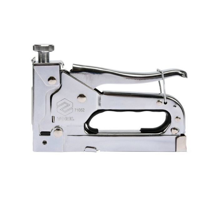 Оббивний степлер Vorel – це надійний інструмент для швидкого і міцного з'єднання різних матеріалів, таких як дерево, тканина, картон, папір або шкіра. Інструмент підходить для оббивних робіт, покрівлі, декорування та оздоблення будівель.