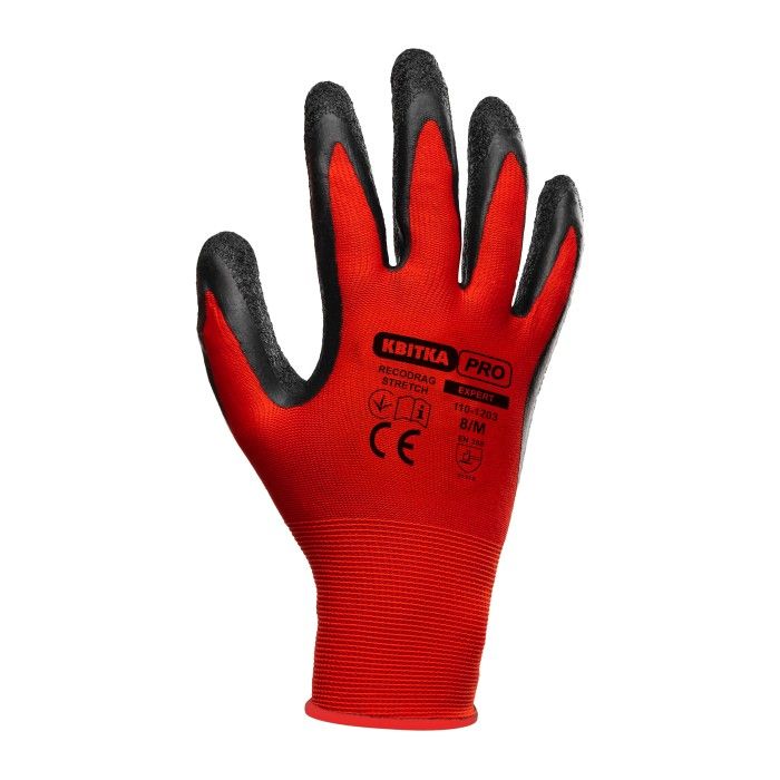 Стрейчеві рукавиці з латексним покриттям КВІТКА PRO Recodrag Expert (110-1203-08-IND) - це високоякісні рукавиці, які призначені для різних робіт, де необхідний захист рук. Вони забезпечують відмінну маневреність та дозволяють тримати предмети з великою точністю. Рукавиці виготовлені зі стрейчевої тканини, що забезпечує високу еластичність та комфорт при носінні. Латексне покриття забезпечує додатковий захист від зношування та пошкоджень.