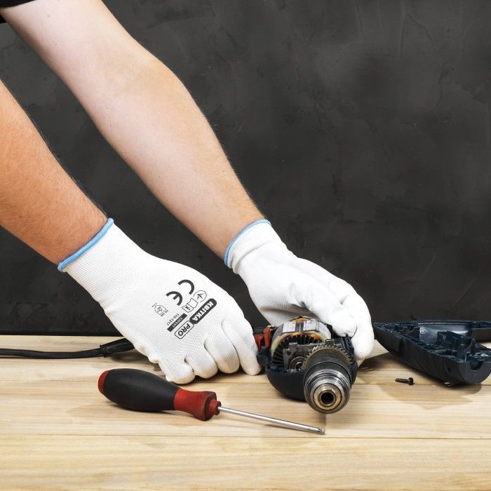 Також, рукавиці мають відмінну вентиляцію для забезпечення комфорту та пропускання повітря. Вони легкі та ергономічні, що дозволяє працювати без зайвих зусиль. КВІТКА PRO Sensitive Expert (9"/ L) (110-1217-09-IND) забезпечують захист рук від нечистот, пошкоджень та інших негативних чинників у робочому середовищі.