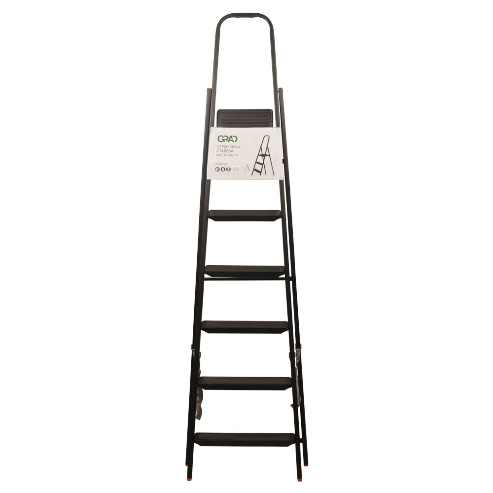 Стрем'янка сталева GRAD 6 сходинок 2,05 м (5035885) – компактна та зручна переносна драбина, яка встановлюється без опори до стіни. Використовується для внутрішніх і зовнішніх ремонтних і будівельних робіт, побутових потреб, а також для садових завдань, наприклад, збирання врожаю.