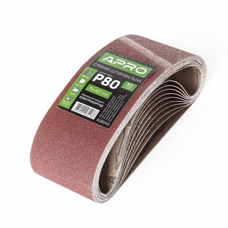 Стрічка шліфувальна нескінченна 75*457 мм Р80 (10шт.) (APRO) може бути використана в будівництві, ремонтних роботах, виробництві меблів та інших галузях, де необхідно шліфувати метал або дерево.