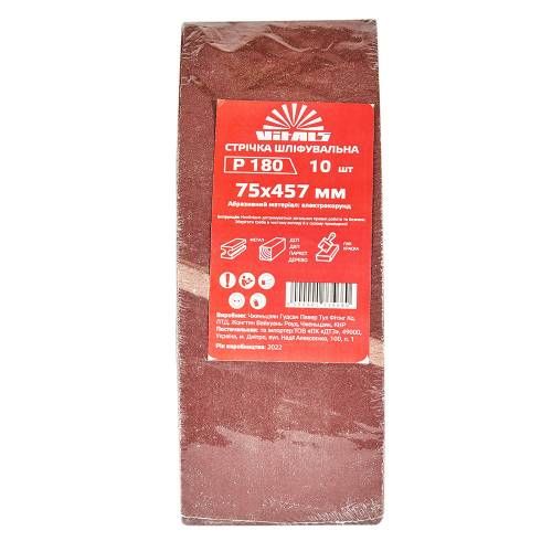 Стрічка шліфувальна Vitals 75х457 мм з розміром зерна Р180 підходить для обробки різних матеріалів, зокрема ДСП, ДВП, паркет, метал, фарба, лак, дерево. Вона використовується у будівельній, ремонтній, та декоративній сферах.