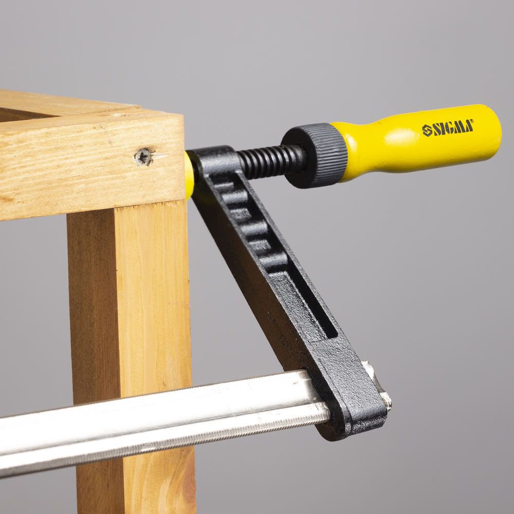 Струбцина столярна тип F 1000120мм DIN 5117 SIGMA (4242491) застосовується для затиснення і фіксації різних заготовок і деталей під час склеювання та інших столярних робіт. Для максимальної зручності пристосування закріплюється на столі або верстаті.
