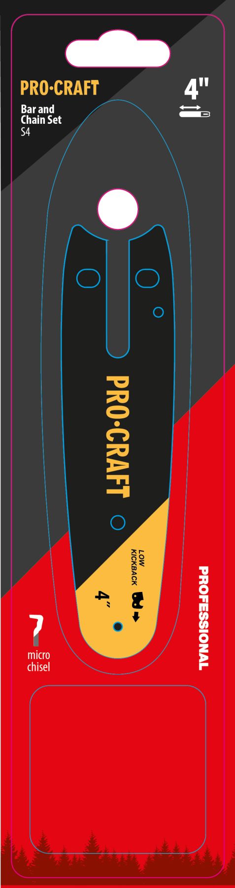 Комплект Procraft S4 Universal призначений для компактних пил та міні-інструментів. У наборі передбачено одну шину довжиною 4" (10 см) та два ланцюги, що забезпечує зручність у роботі й економію на витратних матеріалах. Ланцюг з кроком 1/4" та 28 ланками підходить для точного та акуратного різання деревини.