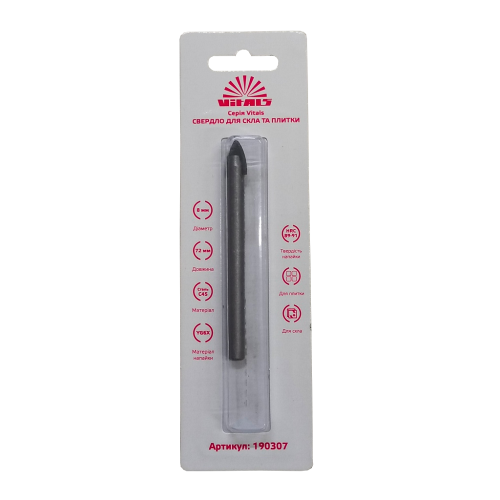 Свердло пікоподібне Vitals може використовуватися для свердління отворів в плитці та склі товщиною 8 мм. Ідеально підходить для монтажу кріпильних елементів та проведення ремонтних робіт у домашніх умовах або на будівельному майданчику.