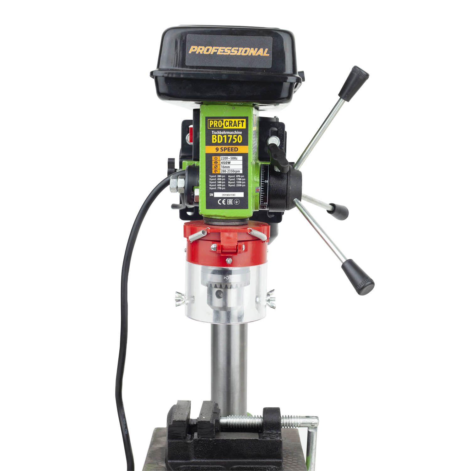 Свердлильний верстат Procraft BD1750 - це настільний верстат з великою кількістю швидкостей обертання шпинделя та плавним регулюванням обертів. Знижений рівень вібрації під час роботи дозволяє забезпечити точність та стабільність при свердлінні. Завдяки частоті холостого ходу від 280 до 2350 об/хв, верстат відповідає вимогам різних видів робіт. Його можна використовувати як для професійного використання, так і для домашнього майстрування. Цей верстат також відрізняється простотою в установці та зручними регулювальними елементами.