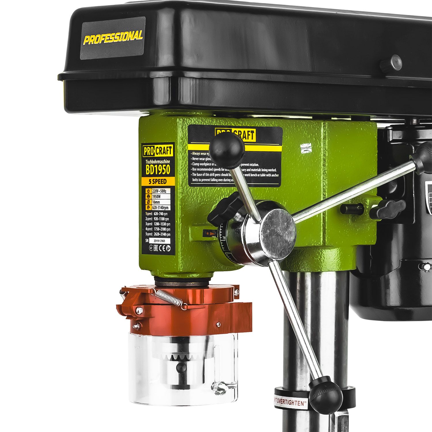 Свердлильний верстат Procraft BD1950 має кілька переваг, що роблять його привабливим вибором. Потужний двигун забезпечує ефективну роботу і дозволяє свердлити отвори різної глибини і діаметру з легкістю. Контроль швидкості обертання шпинделя дозволяє налаштувати верстат під потреби роботи з різними матеріалами. Компактний дизайн і зручність в користуванні роблять цей свердлильний верстат ідеальним вибором для професіоналів та початківців.