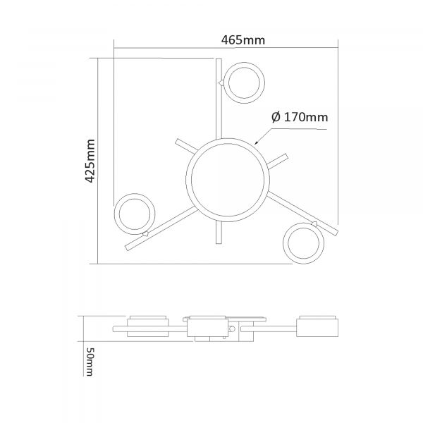 Як джерело світла використовується 3 лампочки з цоколем GX53 і максимальною потужністю до 30W кожна. Вбудоване світло має потужність 9W, а його світловий потік складає 830Lm. Колірна температура - 2700К (тепле світло).