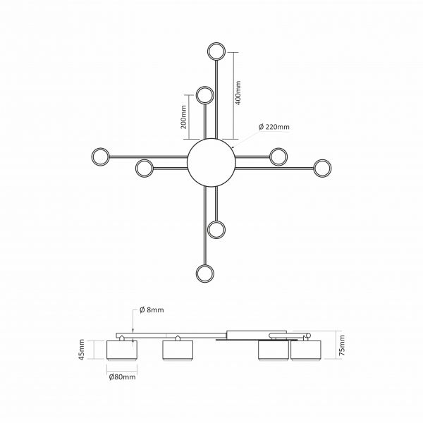 Як джерело світла використовується 8 лампочок з цоколем GX53 і максимальною потужністю до 30W кожна. Довговічний, має високий ступінь захисту від негативного впливу зовнішнього середовища. Буде служити довго, що підтверджується гарантією - 2 роки. При виготовленні використовуються тільки безпечні матеріали. Лампа в комплект до світильника не входить!