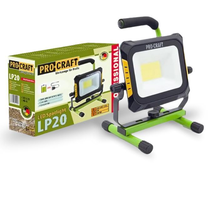 Прожектор світлодіодний PROCRAFT LP-20 - це потужний прилад загального призначення з високою якістю освітлення. Виконаний з використанням світлодіодної лампи, що забезпечує довговічність та економію електроенергії. Має кольорну температуру 6000K, що надає чисте та яскраве освітлення у приміщенні. Забезпечується живленням як дротовим, так і бездротовим способом, що робить його зручним у використанні. Має клас захисту IP20, що забезпечує його захист від пилу та механічних пошкоджень. Може бути встановлений на підлогу, що робить його універсальним для використання в будь-якому приміщенні.