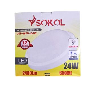 Світильник LED вологозахищений з датчиком руху SOKOL 24Вт, 220В, 2400лм, 6500K, IP65, круглий (ЖКГ)