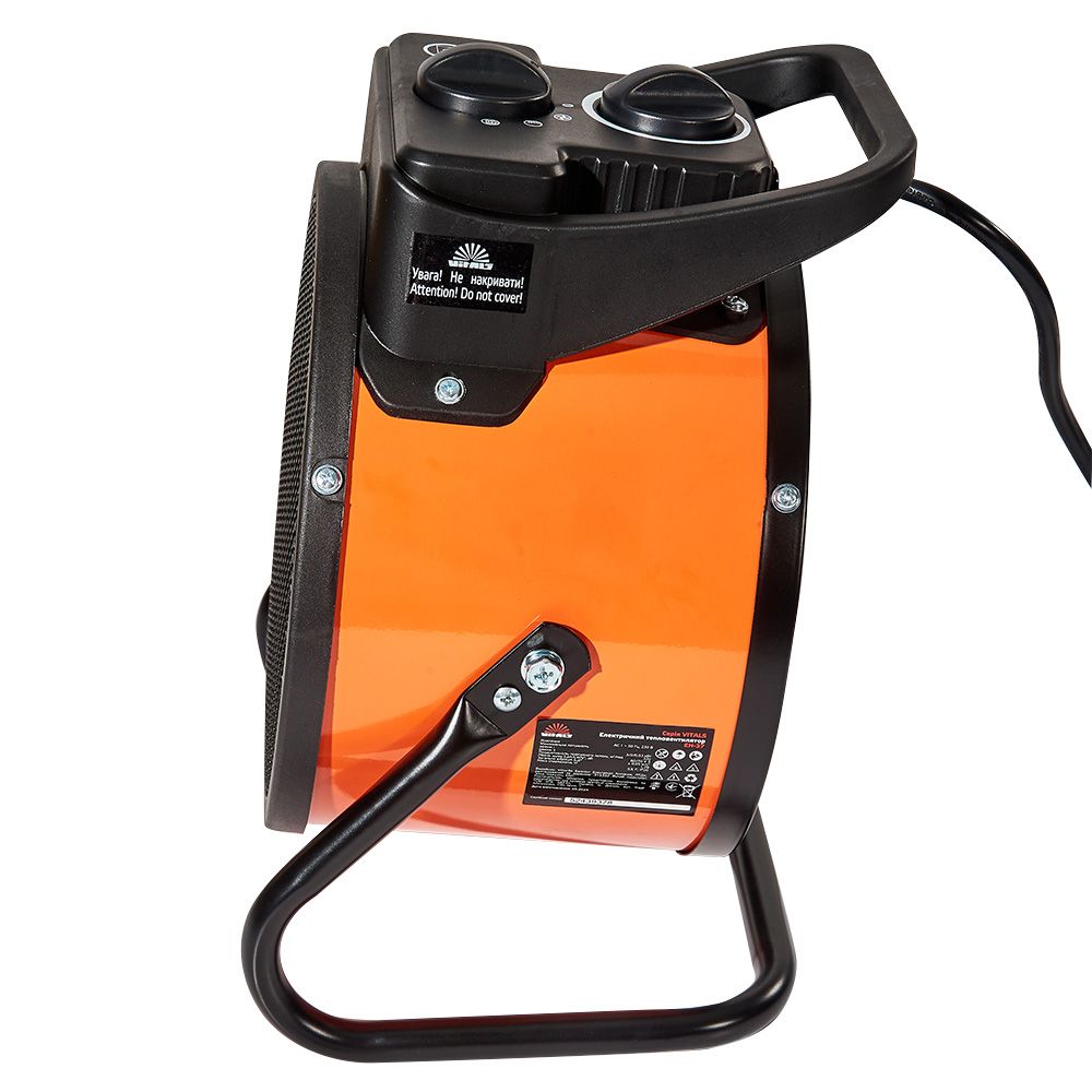Тепловентилятор промисловий Vitals EH-37 — електрична теплова гармата потужністю 3 кВт, призначена для обігріву приміщень площею до 30 м². Має три режими роботи, вбудований термостат і режим вентиляції без нагріву. Легкий і компактний, зручний у транспортуванні та використанні.