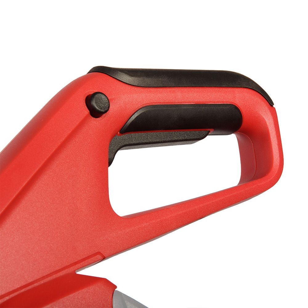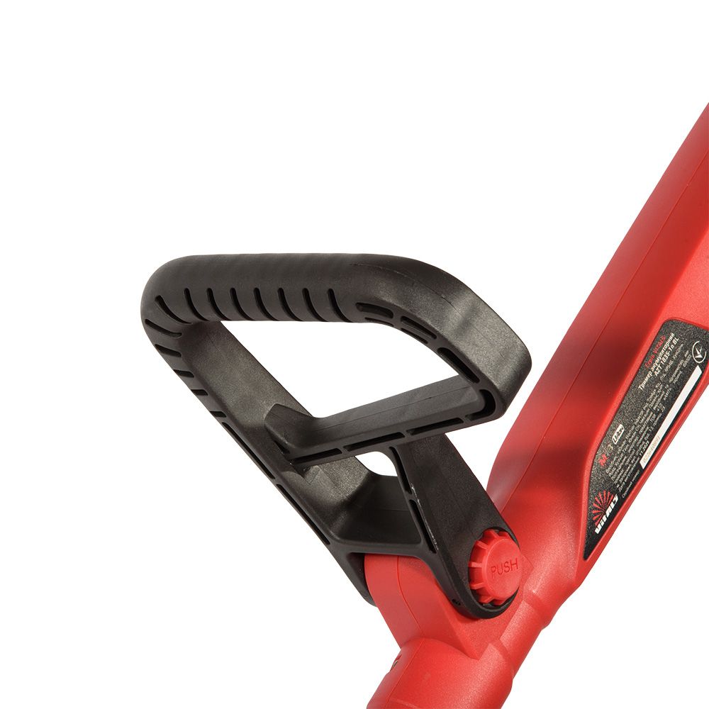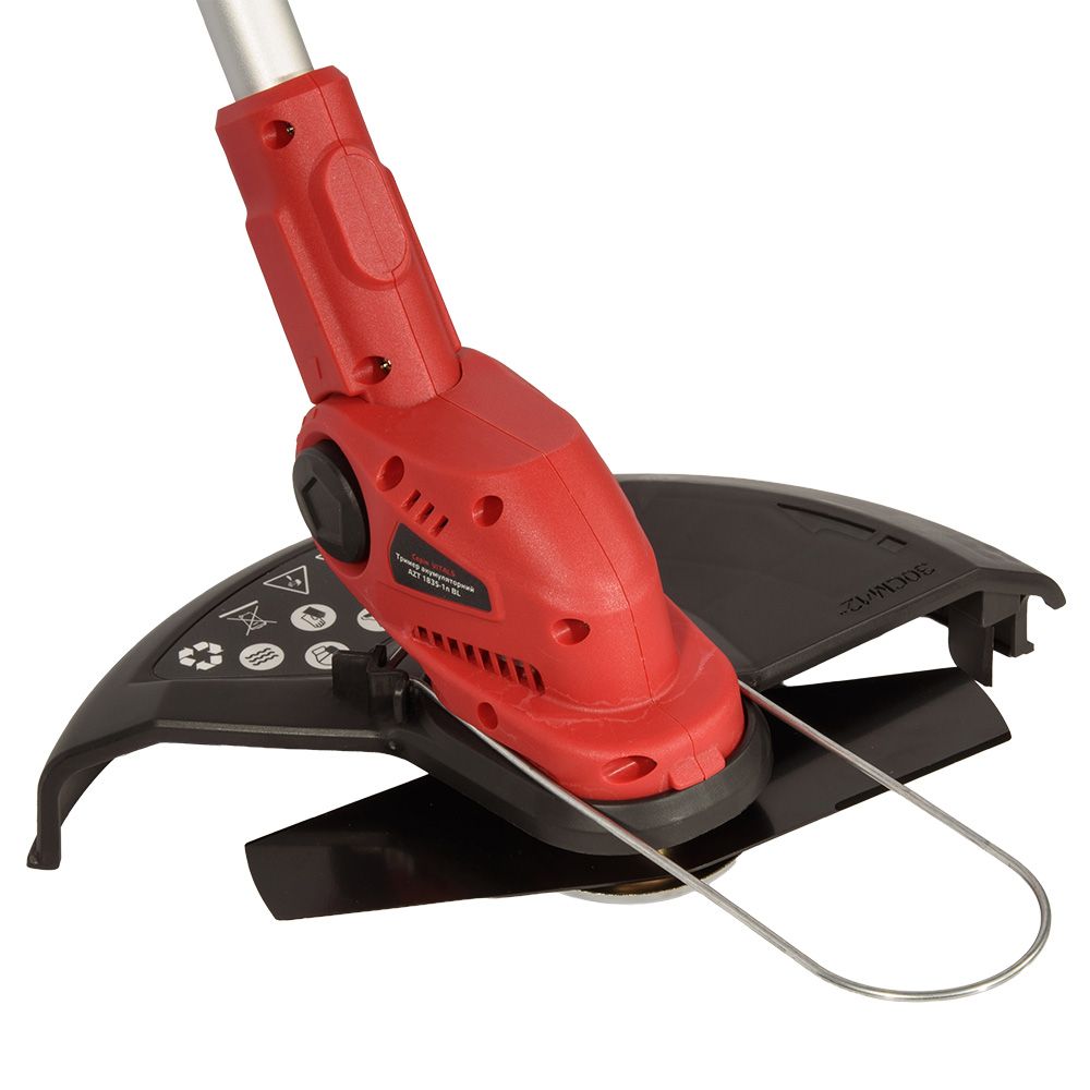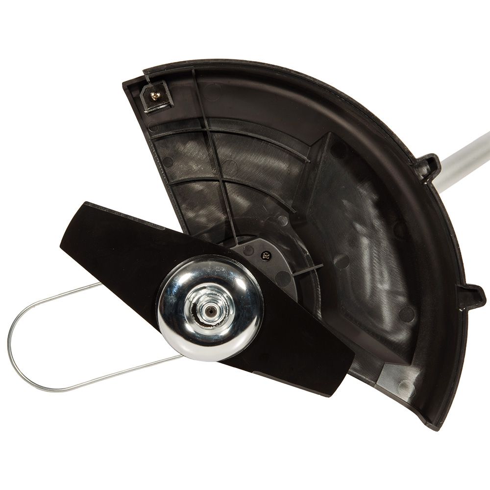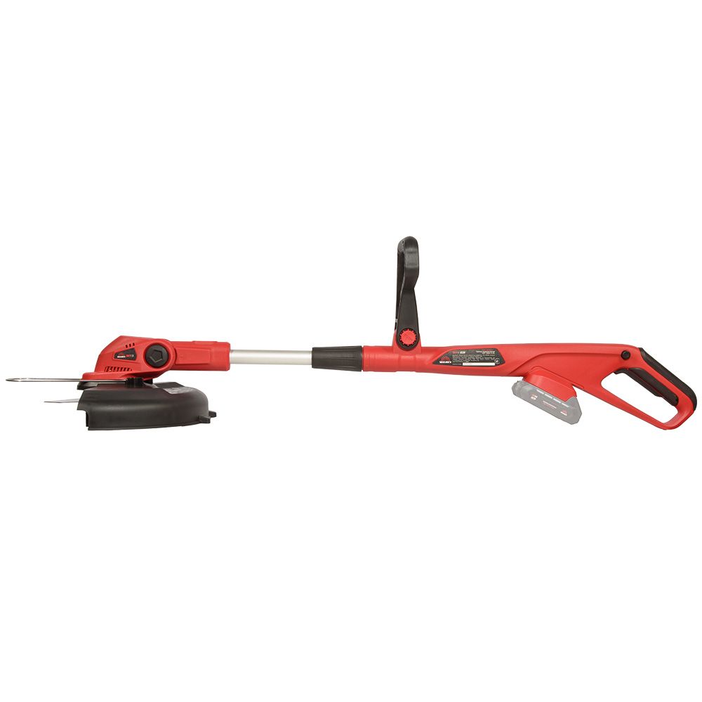 Модель оснащена електродвигуном потужністю 350 Вт і напругою 18 В, що забезпечує стабільну продуктивність для побутових задач. Нижнє розташування двигуна покращує балансування та знижує рівень вібрації. Телескопічна алюмінієва штанга дозволяє регулювати довжину інструмента відповідно до зросту користувача.