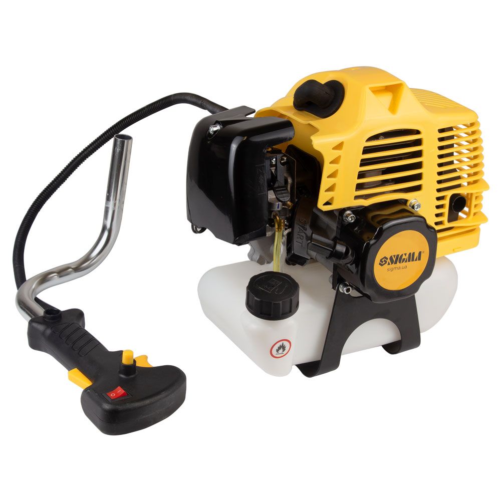 Бензиновий тример Sigma являє собою ручний моторизований виріб з верхнім розташуванням двигуна внутрішнього згорання. Принцип дії виробу дуже простий: обертальний рух від двигуна внутрішнього згорання передається на вал. Конічний редуктор здійснює механічну передачу крутного моменту від валу на шпиндель, на якому закріплений ніж або котушка з ліскою