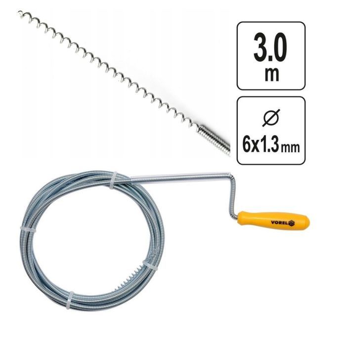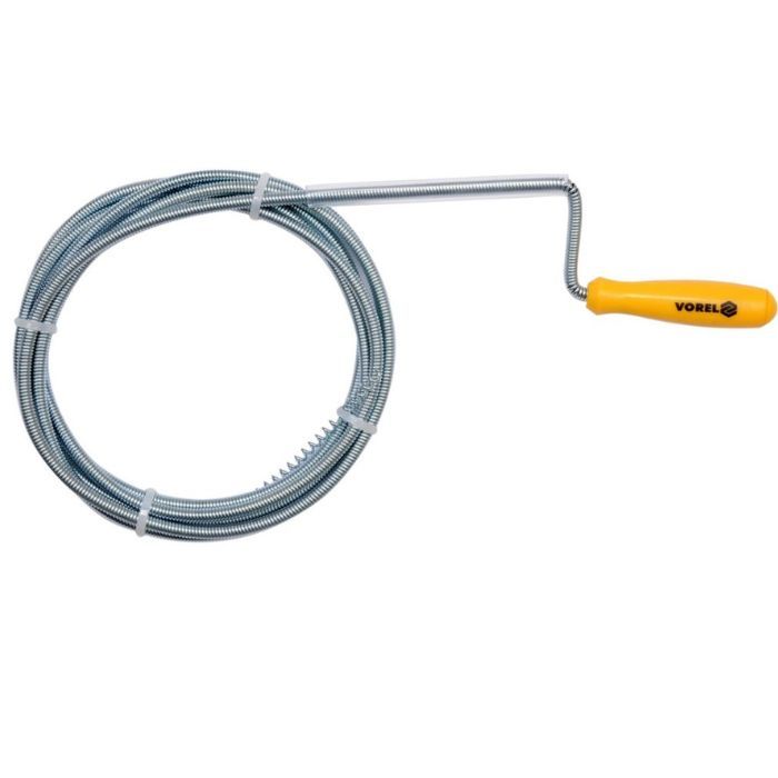 Трос пружний для чистки каналізаційних труб. Застосовується для видалення засмічень у трубопроводів. Довжина тросу складає 10 метрів, діаметр - 9 мм. Механічний принцип дії дозволяє легко та ефективно видаляти забруднення. Виготовлений з високоякісних матеріалів, що забезпечує його довговічність та надійність. Оснащений ручкою для зручного користування. Цей трос є незамінним інструментом для професіоналів та домашнього використання.