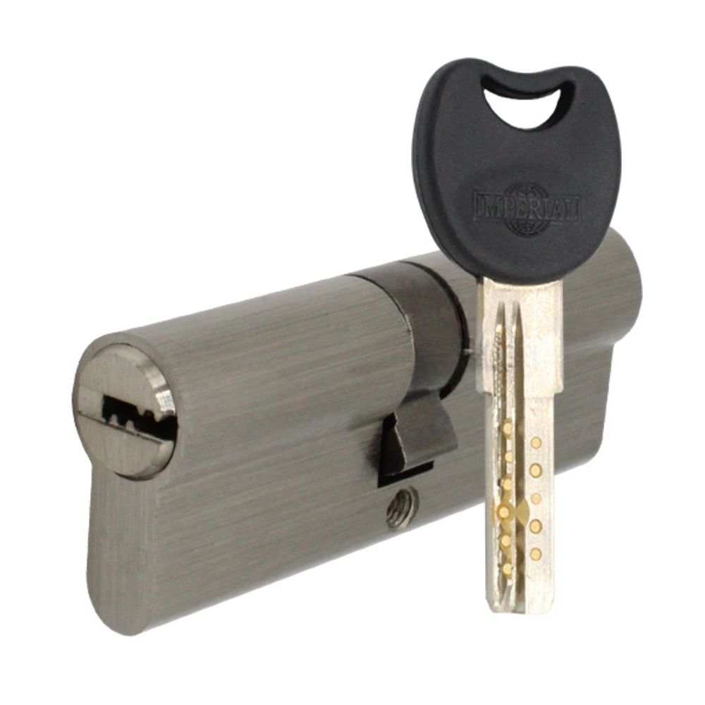 Циліндр IMPERIAL 80 мм — надійна личинка для врізних замків із високим рівнем секретності. Виготовлений із латуні та має покриття нікель сатин, що забезпечує стійкість до корозії та зносу. Підходить для встановлення у вхідні та міжкімнатні двері житлових і офісних приміщень.