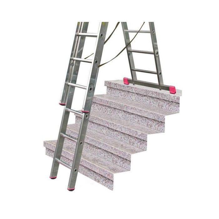 Драбина має додаткові нейлонові захисні вставки для запобігання подряпинам підлоги та стін. Вона легка в обігу та не займає багато місця при зберіганні.
