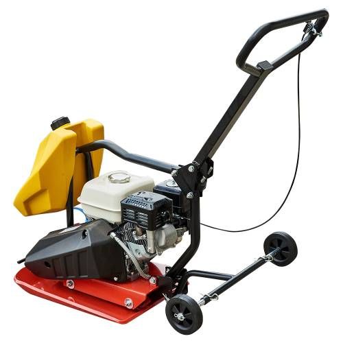 З’ємна ручка і вузол для підйому у вигляді рами над двигуном дає змогу без проблем транспортувати пристрій. Також для зручності транспортування ця вібраційна плита обладнана транспортувальними колесами. У комплект входить свічковий ключ і поліуретановий килимок.