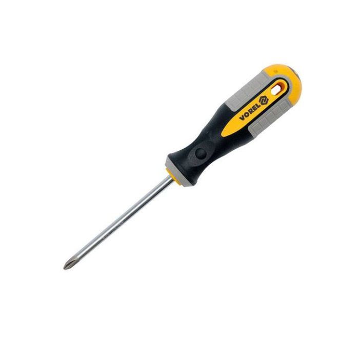 Викрутка хрестова VOREL PH2 x 150 мм є надійним інструментом, виготовленим з хромо-ванадієвої сталі (CrV).