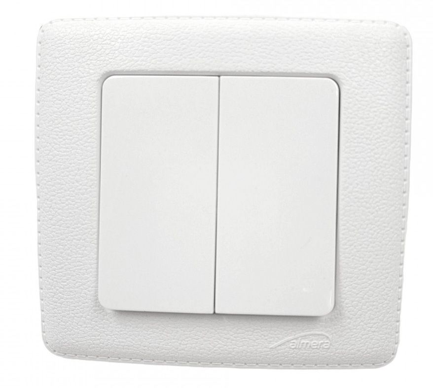 Двоклавішний вимикач Almera серії DOGU з декоративною оздобою під білу шкіру — це стильний та функціональний елемент електрофурнітури, призначений для керування двома окремими джерелами освітлення з одного місця. Поєднує естетику та надійність, підходить для встановлення в житлових або офісних приміщеннях із сухим середовищем.