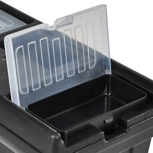 Переваги ящика для інструментів Vitals з пластиковими замками 12" TB-312:- Міцний пластик, що забезпечує надійну захисту від ударів та пошкоджень- Компактний розмір та розділення на відділення для зручного розміщення інструментів- Пластикові замки забезпечують безпечне зберігання інструментарію- Універсальне застосування в різних галузях- Простий та зручний у використанні