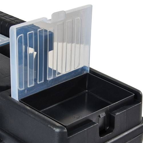 Ящик для інструментів Vitals Master з металевими замками 15" TBM-374 має багато переваг: - Виготовлений з міцного та довговічного пластику, що забезпечує довгий термін служби. - Металеві замки забезпечують надійне закриття та захист від крадіжок. - Компактні розміри дозволяють зручно зберігати ящик в будь-якому просторі. - Роздільники допомагають організувати інструменти за типом або розміром. - Зручна ручка для перенесення дозволяє легко переміщати ящик з місця на місце.