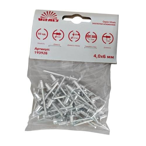 Крім цього, алюмінієві заклепки Vitals мають високу якість, легкість і стійкість до корозії.