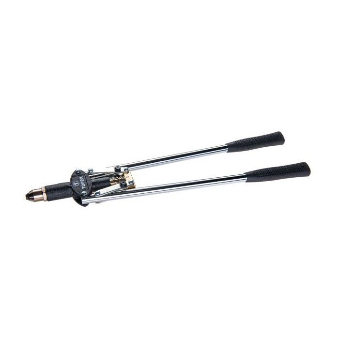 Заклепочник торцевий Topex призначений для використання з алюмінієвими заклепками різних розмірів (2.4, 3.2, 4.0, 4.8 мм). Він є надійним і зручним інструментом для з'єднання матеріалів за допомогою заклепок без необхідності свердлити отвори. Цей заклепочник допоможе швидко і легко зробити потрібне кріплення в домашніх умовах або на виробництві. Він має стійкий металевий корпус і ручку з пластику, яка забезпечує комфорт під час роботи.