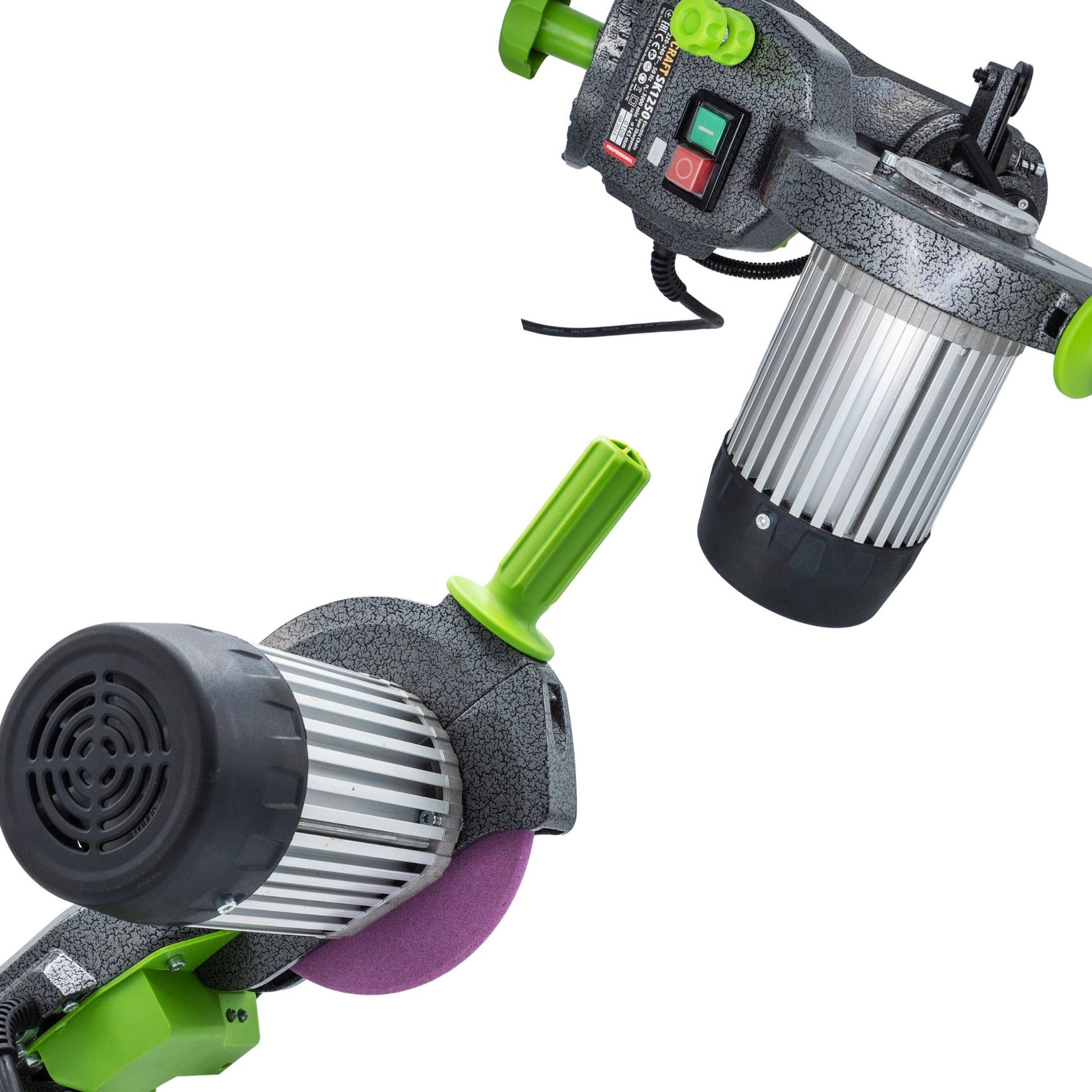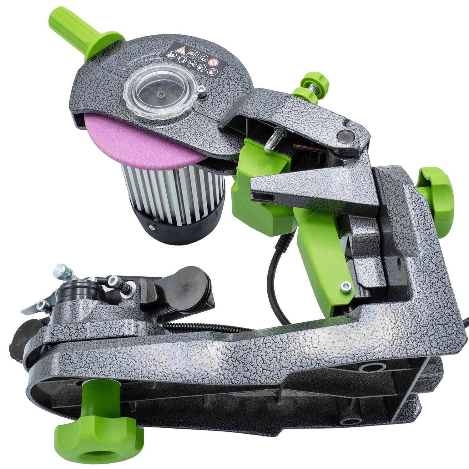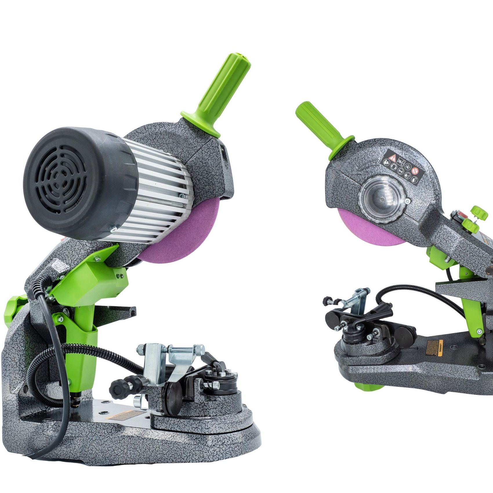 Модель має компактну конструкцію, зручну для встановлення на робочому столі, і важить лише 6,3 кг, що робить її зручною у використанні та транспортуванні. Для обробки використовуються шліфувальні кола діаметром 145 мм із посадковим діаметром 22 мм, що входять у комплект. Заточка підходить для роботи з металом і стане практичним рішенням для власників бензопил чи електропил.