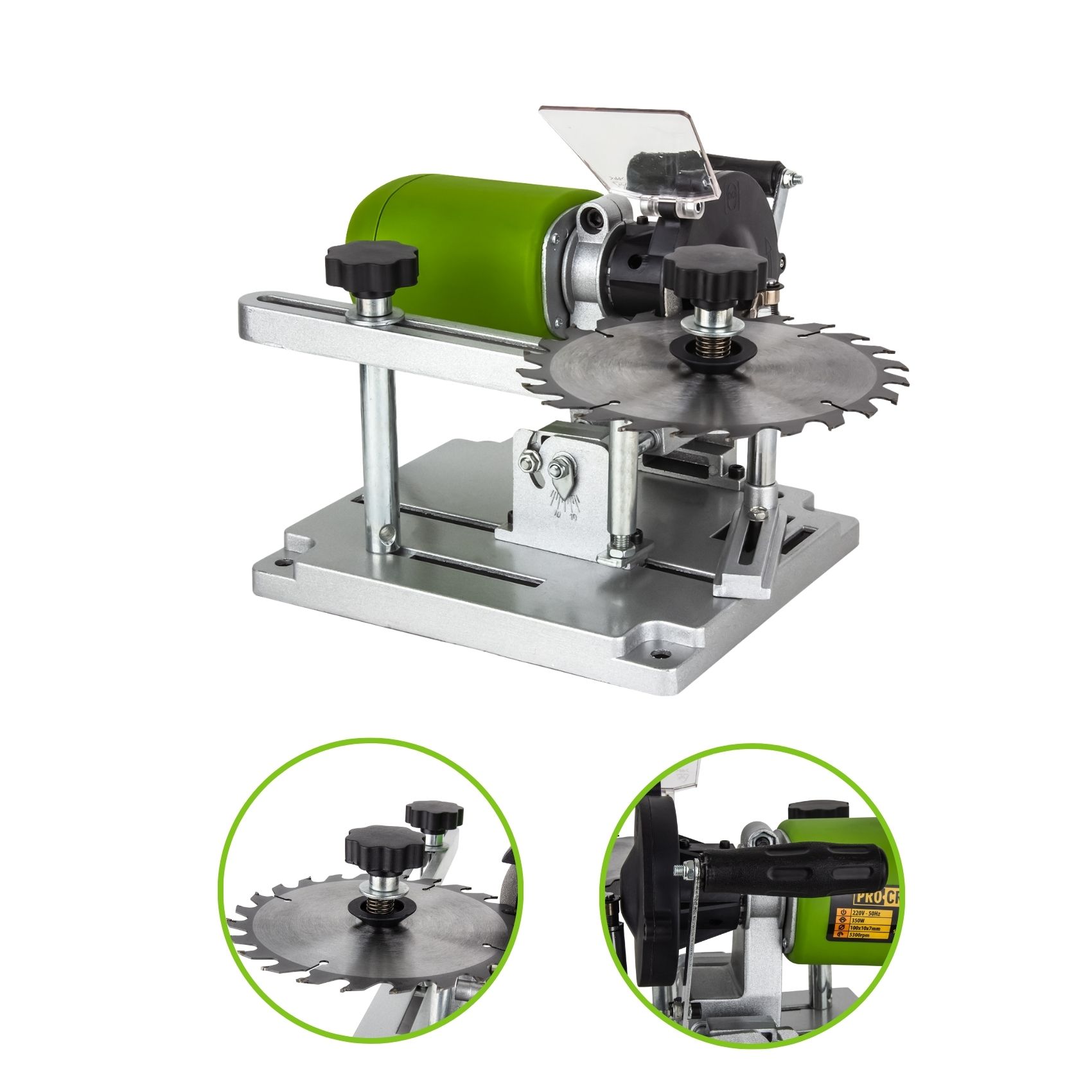Заточка для пильних дисків Procraft SS350 - це побутовий верстат для заточування пильних дисків. Вона має споживну потужність 110 Вт і зовнішній діаметр шліфувального круга від 90 до 400 мм. Частота холостого ходу становить 5300 оборотів на хвилину. Ця заточка призначена для заточування пильних дисків різних розмірів і може використовуватися в домашніх умовах.