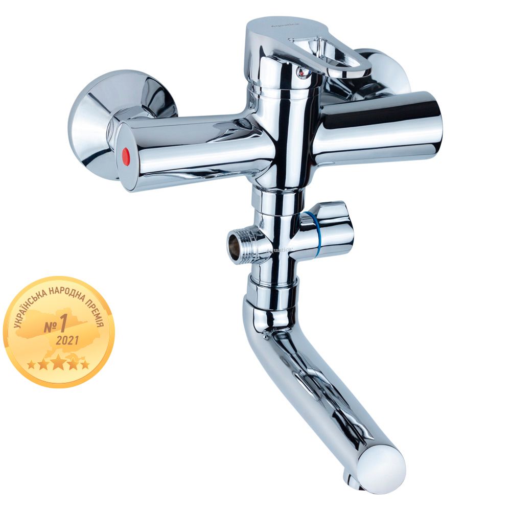 Змішувач AQUATICA HL 35 для ванни, гусак 150 мм, дивертор виносний, картриджний (HL-3C130C)
