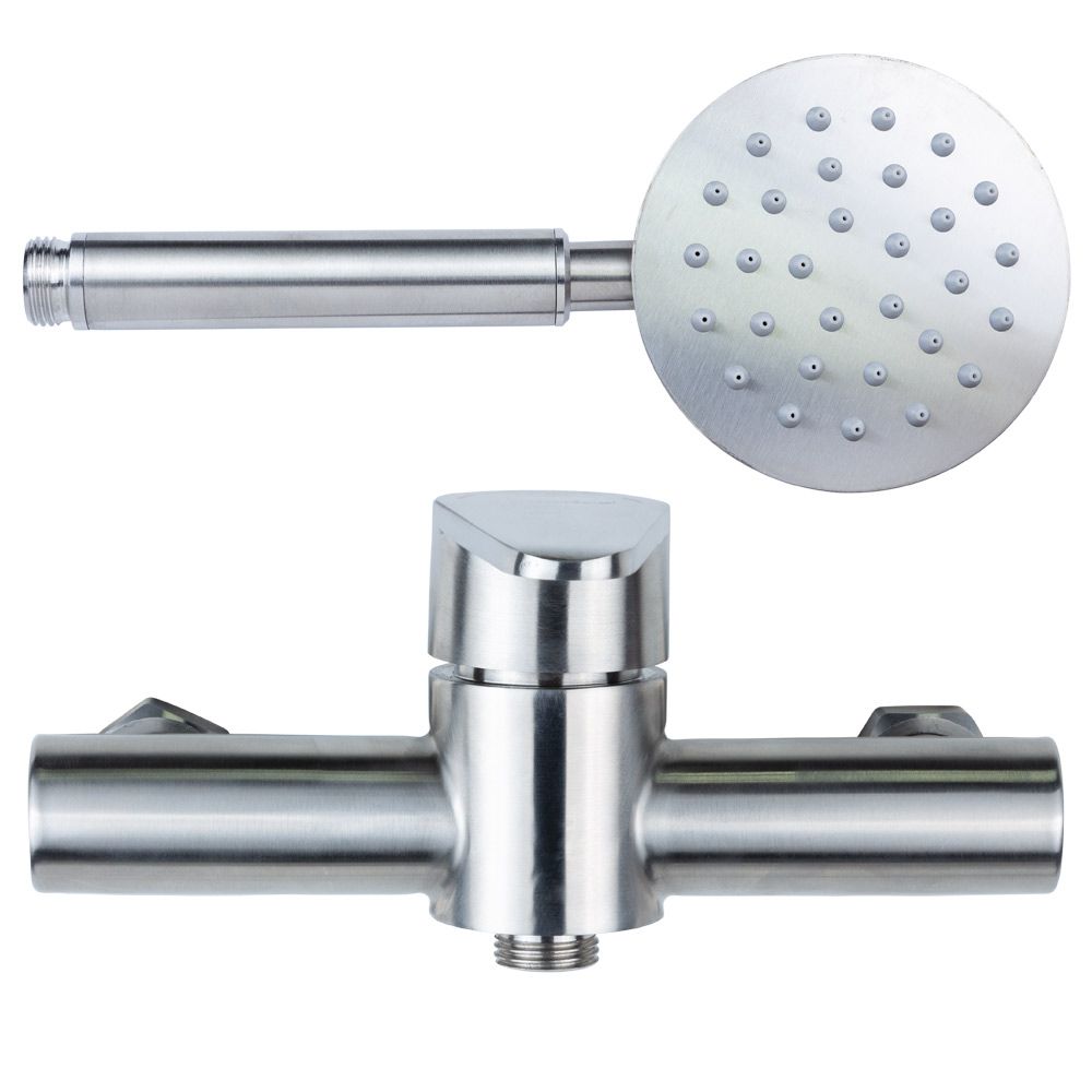 — сучасний одноважільний змішувач із нержавіючої сталі, розроблений для душових систем із підвищеними вимогами до гігієни та довговічності. Оснащений повним набором аксесуарів і підходить для роботи в широкому діапазоні тиску води.