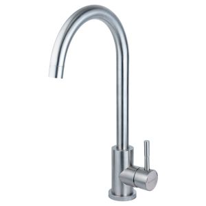 Кухонний змішувач AQUATICA KT-4B170P (9722101) – це надійний одноважільний змішувач із J-подібним поворотним виливом, виготовлений із високоякісної нержавіючої сталі марки AISI304. Такий дизайн забезпечує зручність у користуванні, особливо в глибоких мийках, і чудово доповнює сучасний інтер’єр кухні.