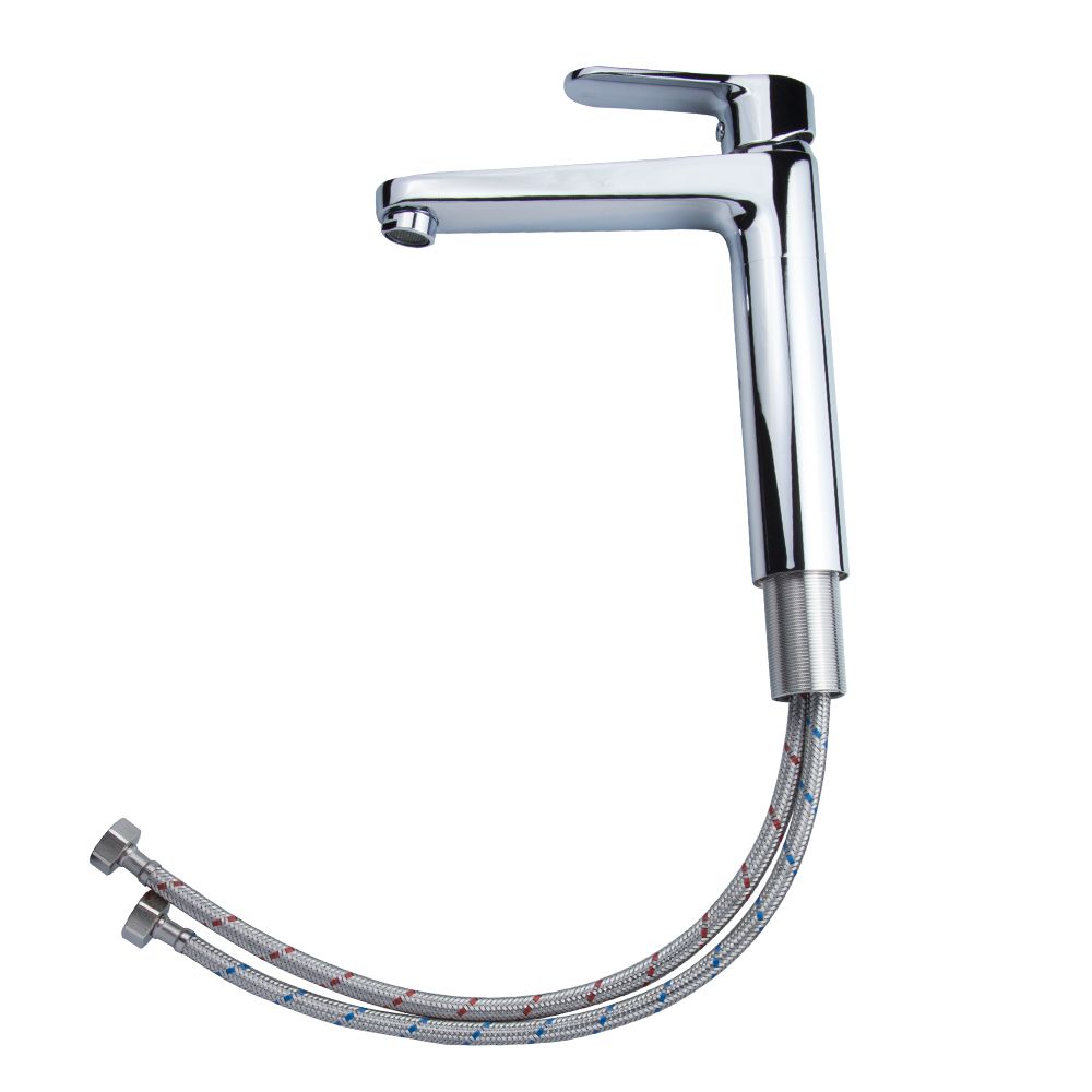 Цей високий литий змішувач виготовлений з міцної латуні та має хромоване покриття. Він призначений для встановлення на раковину.
