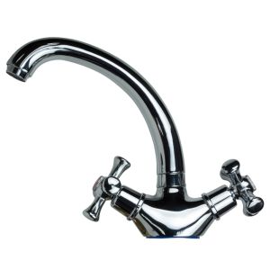 Змішувач AQUATICA PL-4B355C — класичний двохвентильний кран для кухні з коротким J-подібним поворотним гусаком. Завдяки компактній висоті та виносу, він ідеально підходить для мийок невеликих розмірів. Хрестоподібні вентилі з кольоровими заглушками червоного та синього кольору допомагають легко розрізняти гарячу і холодну воду. Стриманий дизайн робить цей змішувач універсальним рішенням для будь-якої кухні.