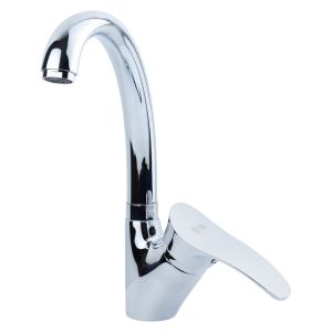 Класичний кухонний змішувач з J-подібним виливом та латунним штоком. Ідеально підходить для мийок з нержавіючої сталі та керамограніта. Оснащений керамічним картриджем для плавного та безшумного регулювання потоку води, а також аератором для стабілізації струменя та економії води.
