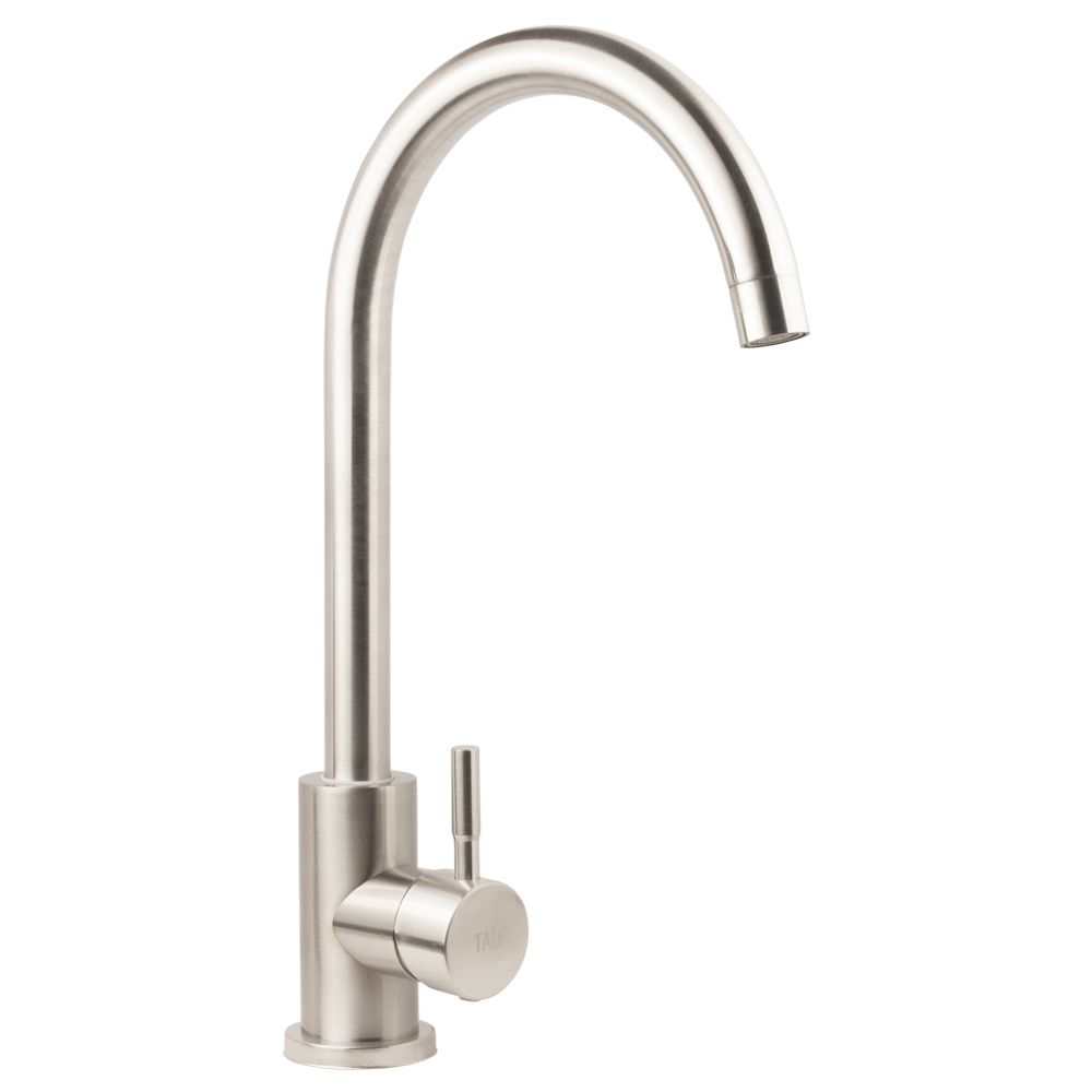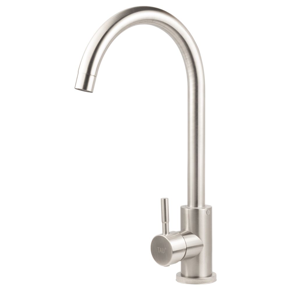 Кухонний змішувач TAU серії s20 виготовлений із нержавіючої сталі, що забезпечує високу міцність, довговічність та повну відсутність свинцю у складі. Вигнутий вилив типу «вухо» робить модель зручною для щоденного користування на стандартних мийках.
