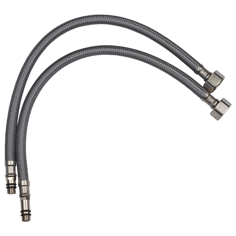 Модель монтується за допомогою шпилькового кріплення, що забезпечує стабільність фіксації та швидкий монтаж без зайвих труднощів. У комплект входять два гнучкі підводи довжиною 400 мм, у нейлоновому обплетенні, які відповідають стандартам надійності та гігієни.