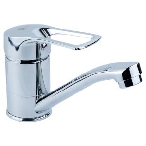 Корпус моделі має хромонікелеве покриття з дзеркальним блиском, яке захищає метал від корозії та спрощує догляд — достатньо періодично протирати поверхню м’якою губкою або тканиною. Завдяки компактним розмірам і функціональності змішувач підходить як для кухонного посуду щоденного користування, так і для мийок невеликих габаритів.
