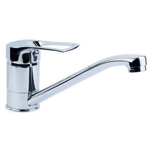 Корпус виробу має хромонікелеве покриття, яке додає дзеркального блиску, захищає від корозії та робить змішувач невибагливим у догляді — достатньо періодично протирати м’якою губкою або тканиною. Модель підходить для експлуатації на домашній кухні, а також у невеликих закладах громадського харчування.
