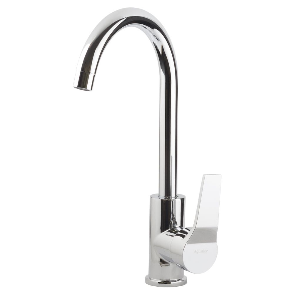 Змішувач AQUATICA S45 40 (9745100) поєднує у собі сучасний дизайн, надійність і зручність експлуатації. Його високий J-подібний поворотний вилив обертається на 360°, що забезпечує максимальний комфорт під час миття посуду чи заповнення великих ємностей. Така форма ідеально підходить для глибоких мийок та підвищує ергономіку робочого простору.